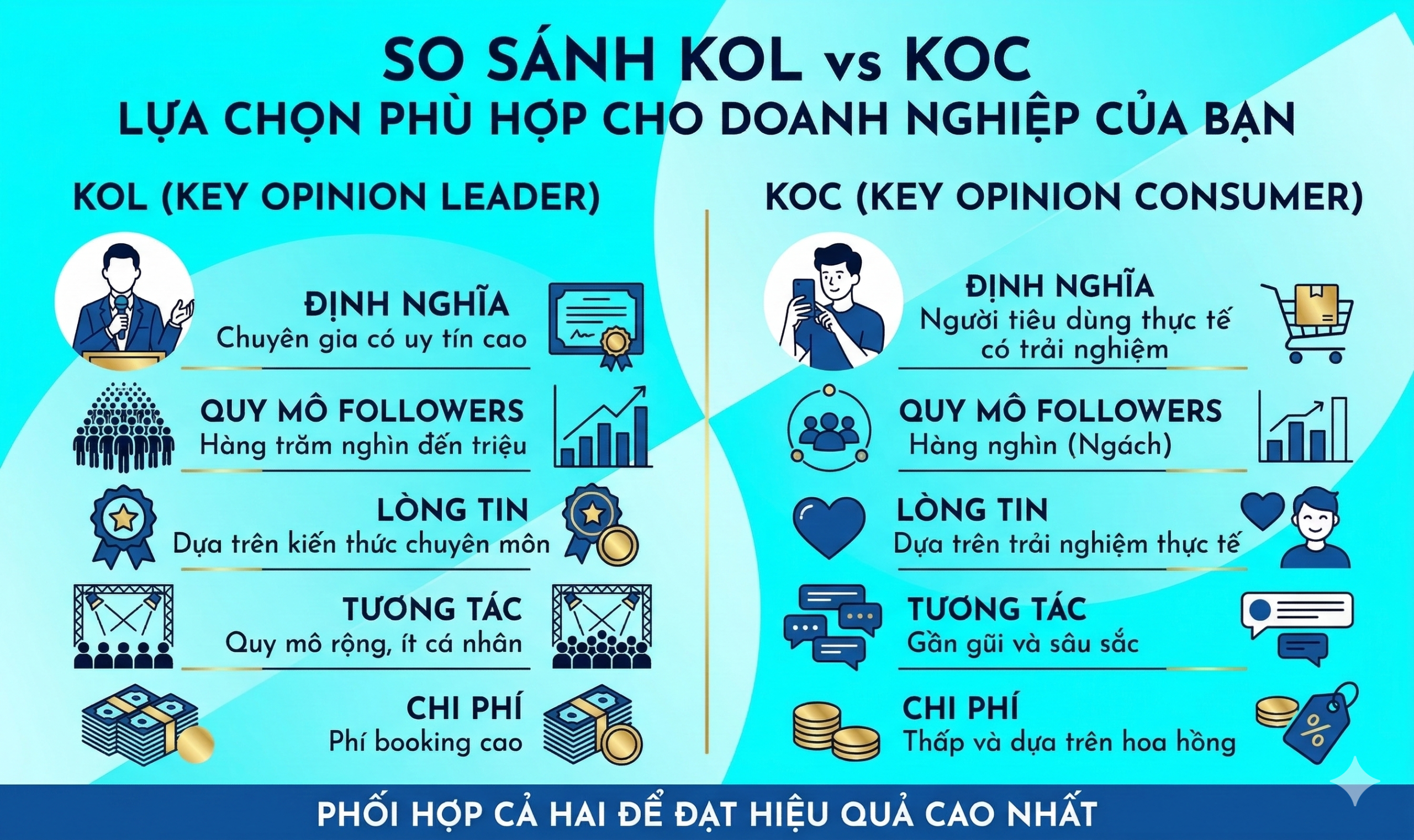 Nhiều người thường nhầm lẫn giữa KOC và KOL, dẫn đến những sai lầm chết người trong việc phân bổ ngân sách. Để thống lĩnh thị trường, bạn cần hiểu rằng KOC không phải là những ngôi sao xa vời; họ chính là những chiến thần bán hàng thầm lặng trong cộng đồng.