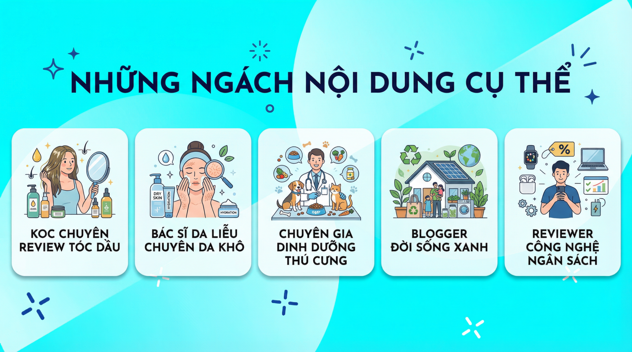 Trong quá trình áp dụng booking KOC là gì vào thực tế, việc lựa chọn KOC theo ngách nội dung cụ thể trở thành một yếu tố then chốt. Thay vì chọn những KOC có nội dung quá rộng, doanh nghiệp nên ưu tiên các creator tập trung vào một lĩnh vực rõ ràng. Điều này giúp nội dung review trở nên chuyên sâu hơn và tiếp cận đúng nhóm khách hàng có nhu cầu thực sự.