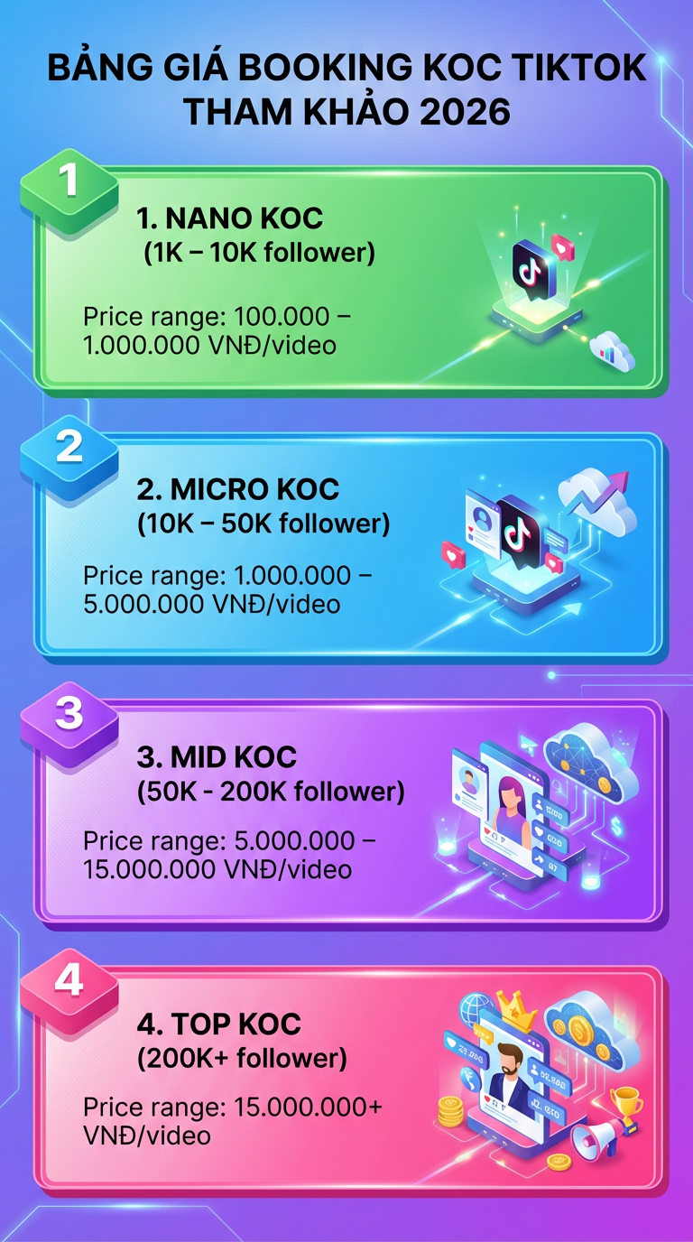 Bảng giá booking KOC TikTok tham khảo 2026