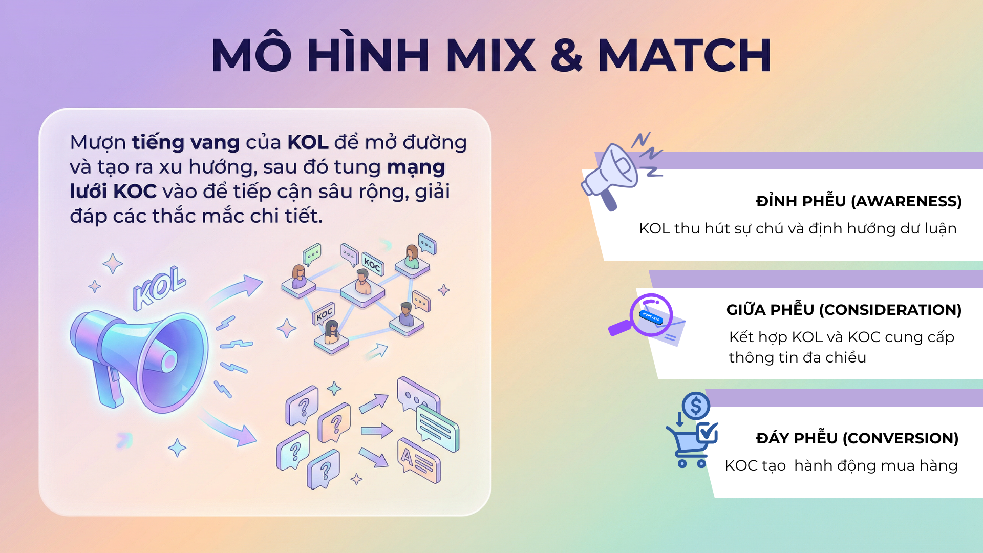 • Tại giữa phễu (Consideration): Sự kết hợp giữa KOL và KOC giúp khách hàng có thêm thông tin đa chiều để cân nhắc.